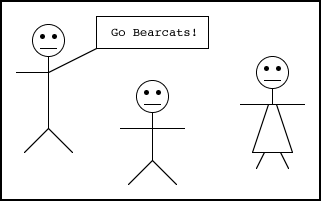 draws a picture on the screen. Your picture should have at least 3 stick figures