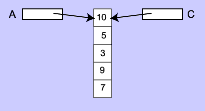 In the above program, the address of A in main is copied into the parameter C when the changeArray method is called. The array itself is not copied, as shown below.