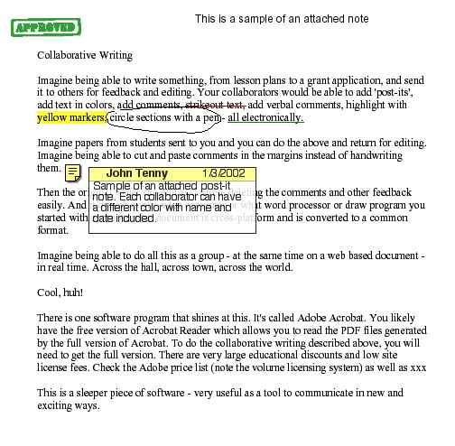 able to add 'post-its', add text in colors, add comments, strikeout text, add