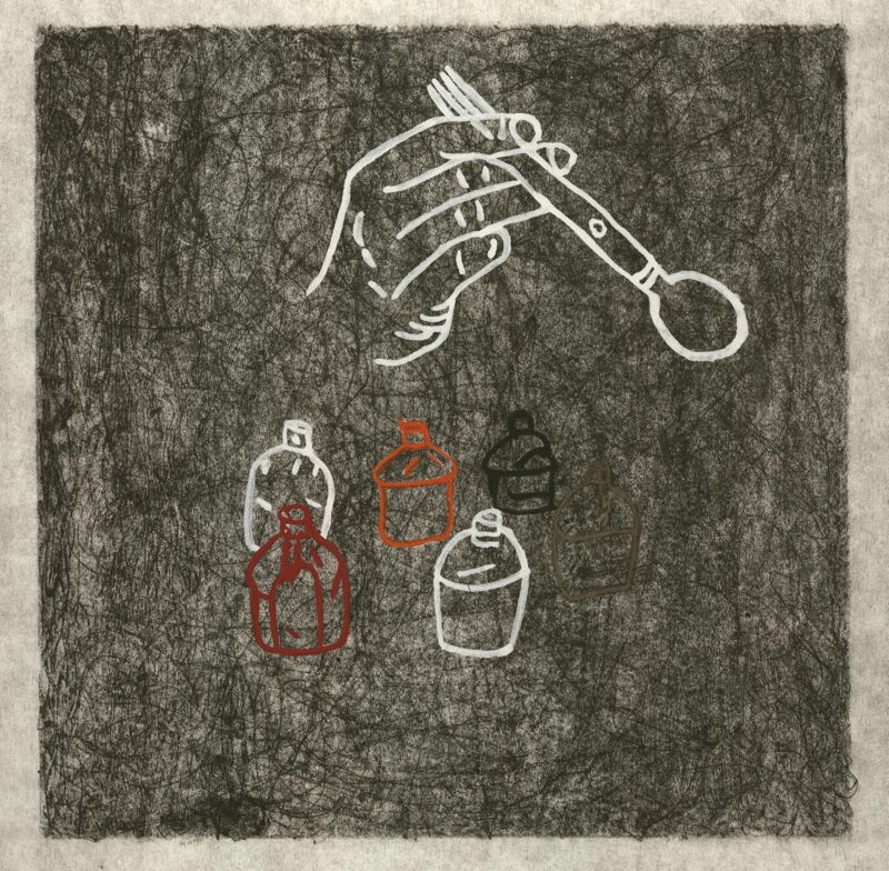James B. Thompson Mess Intaglio w/ Mixed-Media on Paper © 2006 7" X 7" Image Size 22" X 22" Framed Size