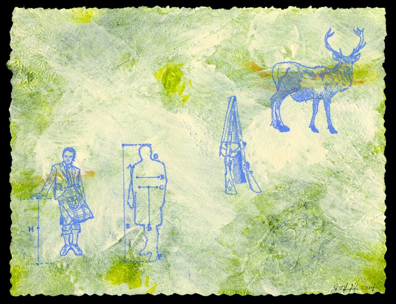 James B. Thompson Stalking Acrylic, Pigment, Mixed-Media on Paper © 2014 9½" X 12½" Image Size 19¼" X 22¼" Framed Size
