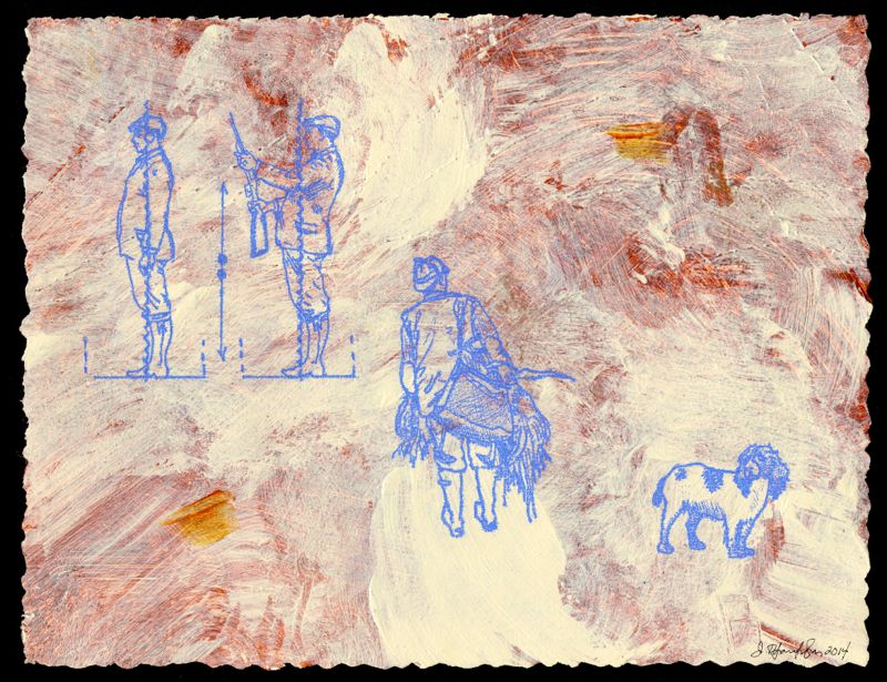 James B. Thompson Bagging Acrylic, Pigment, Mixed-Media on Paper © 2014 9½" X 12½" Image Size 19¼" X 22¼" Framed Size