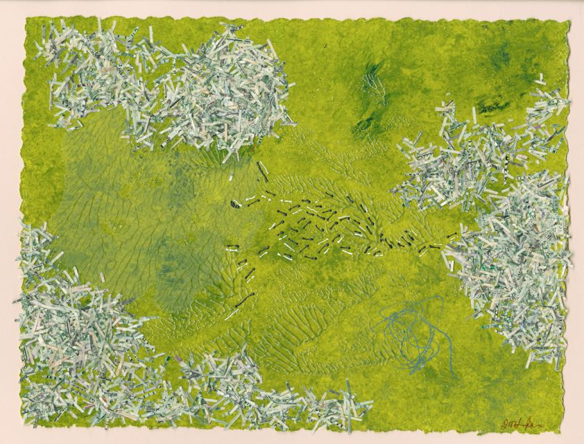 Acrylic, pigment, shredded US currency on Paper