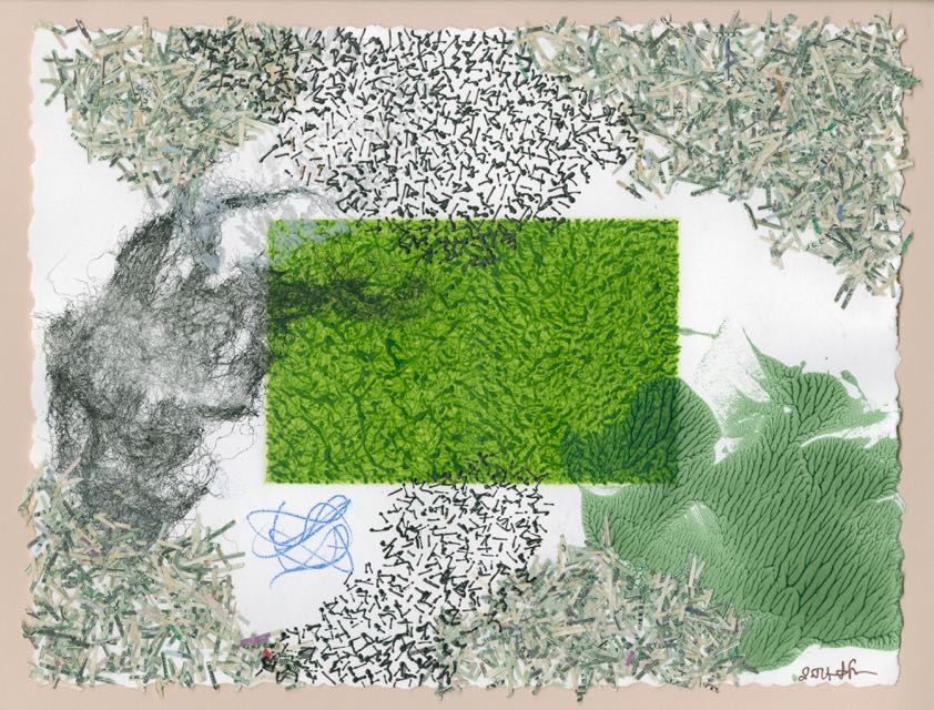 Ink, acrylic, pigment, shredded US currency on Paper