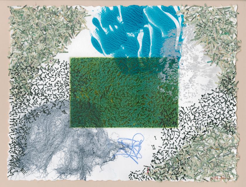 Ink, acrylic, pigment, shredded US currency on Paper