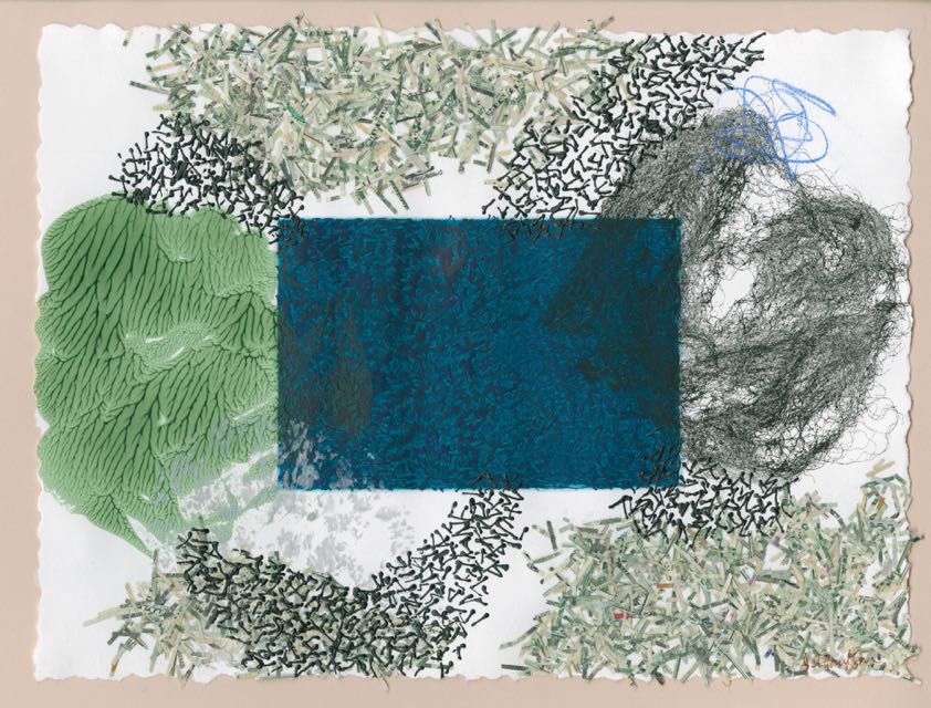 Ink, acrylic, pigment, shredded US currency on Paper