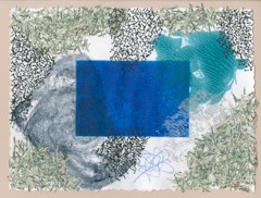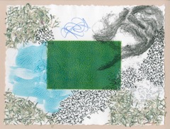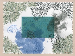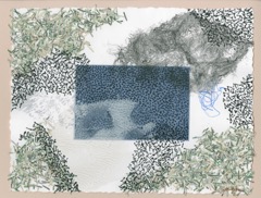 Ink, acrylic, pigment, shredded US currency on Paper